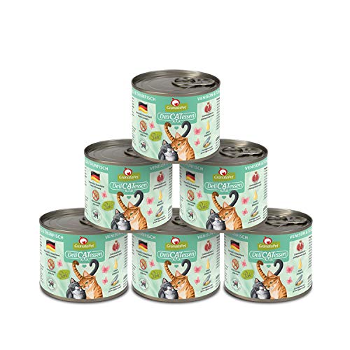 GranataPet Våtfoder Delicatessen vilt och tonfisk, 6 x 200 g, för katter, kattmat för finsmakare, foder utan spannmål och utan sockertillsatser
