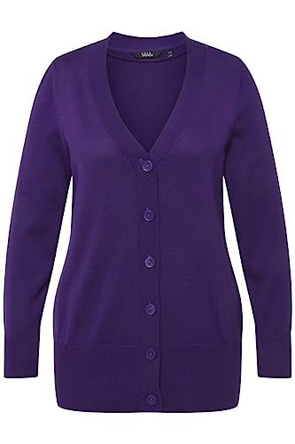 Ulla popken dam, V-hals, knapplist, finstickad kofta, Mörka bär, 46-48