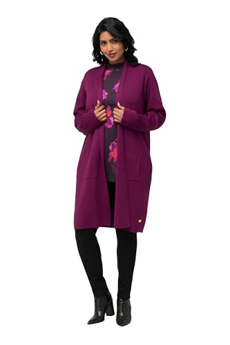 Ulla popken dam, lång, öppen form, mjuk finstickad kofta, Björnbär, 50-52
