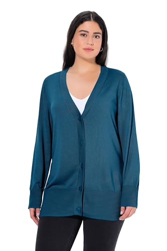 Ulla Popken kofta för kvinnor, lång, öppen form, mjuk finstickad kofta, Grönblå, 46-48