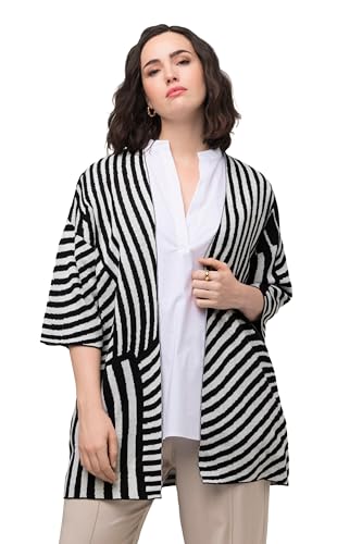 Ulla popken dam, jacquard finstickad ståkrage, halvärm kofta, svart, 42-44