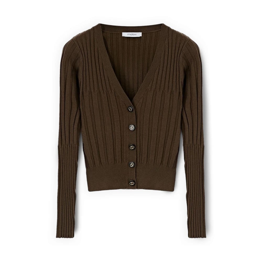 Motivi, Stickade Tröjor , Dam, L, Polyester, Finstickad kofta med ribb
