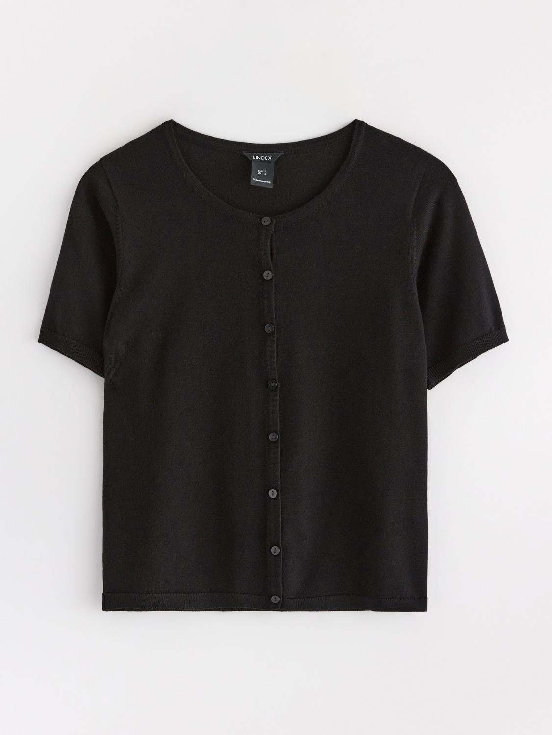 Ulla popken dam, V-hals, knapplist, finstickad kofta, svart, 50-52