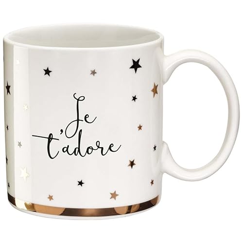 GENEVIEVE LETHU 536554 Mugg 350 ml, Ø 8,5 cm H 10 cm - Way LacTEE kollektion - kaffekopp, temugg av fint vitt porslin - gyllene fris, stjärndekoration