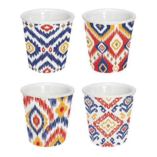 Easy Life 176GEKA kaffemugg, 10 cl, fint porslin, etnisk ikat, 0,1 l, flera färger, 4 stycken