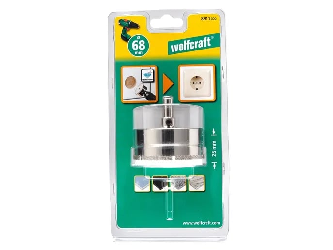 Wolfcraft Gmbh 8911000, Borr, Hålsågsborr, Högerrotation, 6,8 Cm, 25 Mm, Keramiska, Fint Stengods, Glazed Tile, Granit, Marmor, Porslin