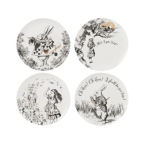 V&A Alice i Underlandet sidotallrik, för middag, eftermiddagste eller frukost, fint porslin, 20,5 cm (8 tum), set om 4, vit