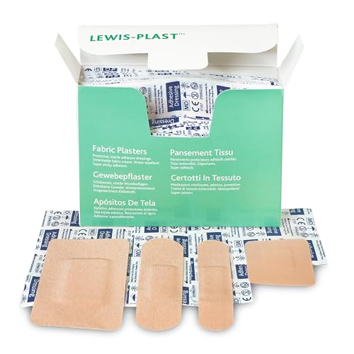 Lewis-Plast Premium Assorted Breathable Sterile Hypoallergenic Fabric Plasters, Box of 100 First Aid Medical Grade Plaster, Suitable for All Types of Minor Cuts and Grazes