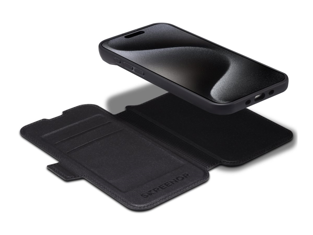 Screenor First - Vikbart Fodral För Mobiltelefon - 2-I-1 - Magsafe-Kompatibilitet - Läder, Termoplastisk Polyuretan (Tpu) - Svart - För Apple Iphone 17