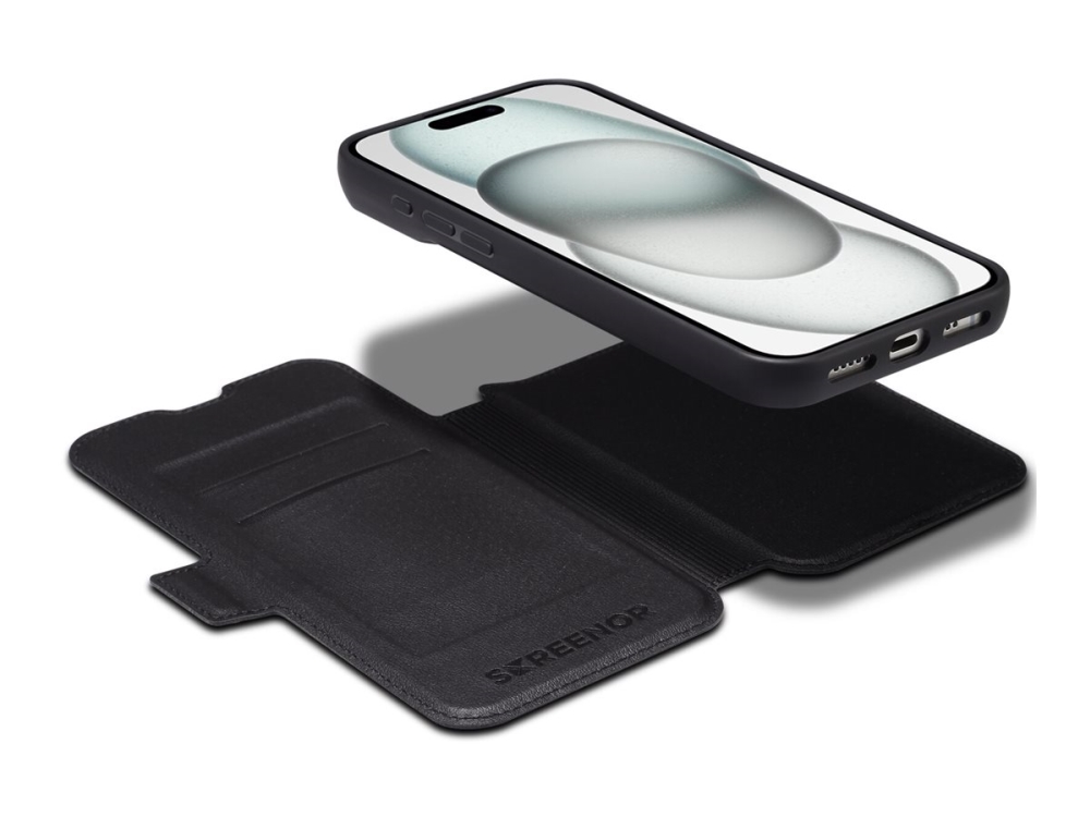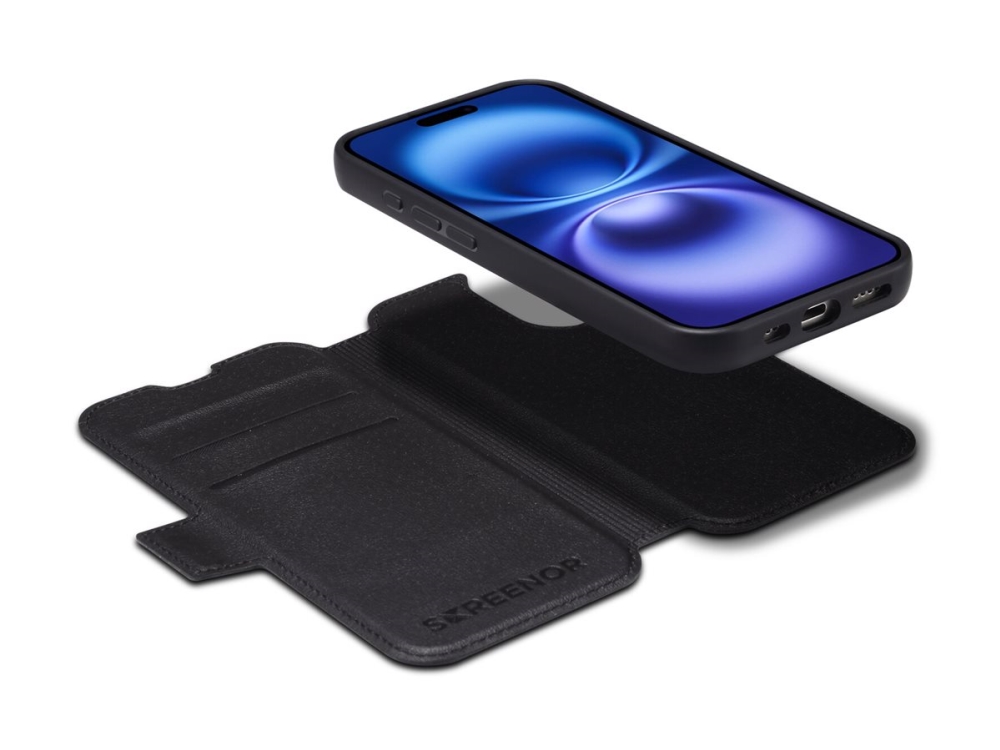 Screenor First - Vikbart Fodral För Mobiltelefon - 2 I 1 - Magsafe-Kompatibilitet - Genuint Läder, Termoplastisk Polyuretan (Tpu) - Svart - För Apple Iphone 16
