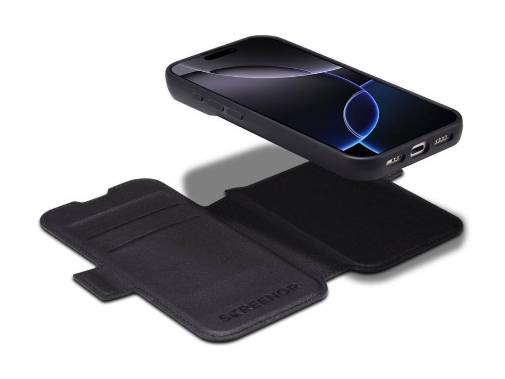 Screenor First - Vikbart Fodral För Mobiltelefon - 2-I-1 - Magsafe-Kompatibilitet - Läder, Termoplastisk Polyuretan (Tpu) - Svart - För Apple Iphone 16 Pro