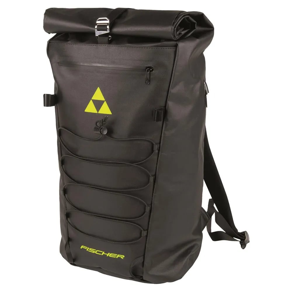 Fischer ryggsäck med hjälmnät, öppning för dricksbubblor, regnskydd, ergonomiskt bärsystem, höftbälte, bröstrem