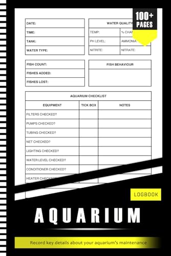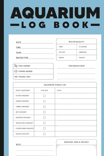 Aquarium Logbook Aquarium Maintenance Notebook Fish Keeping Journal: Tank Aquarium Log Book Fish Keeping Journal. Freshwater log, Record Fish Journal, ... Many More For Saltwater & Fresh Water Tanks