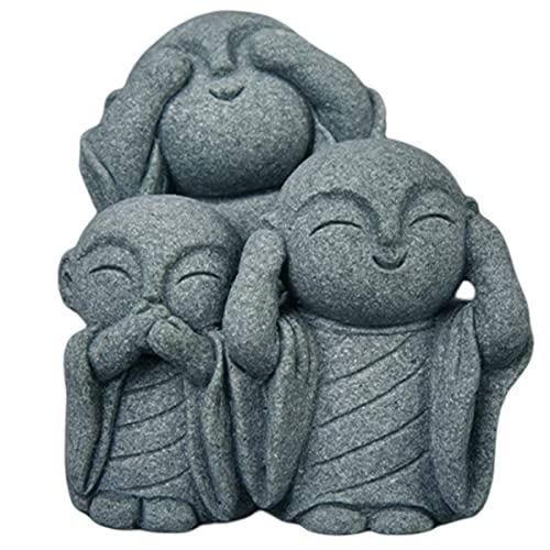 livelyfish Japanese Buddha Statue Bosatsu Feng Shui Praying Monk Statue Sandstone Happy/Smiling Miniature Figurine Ornament for Fish Tank Aquarium Home Garden Decoration, 13