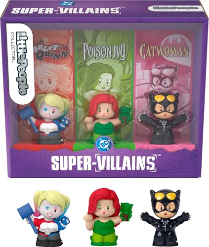 Fisher-Price Little People Collector DC superbrottslingar i specialutgåva med Harley Quinn-karaktärer med basebollträ, Catwoman och Poison Ivy med Frank the Plant, 17+ år gammal, JKR80