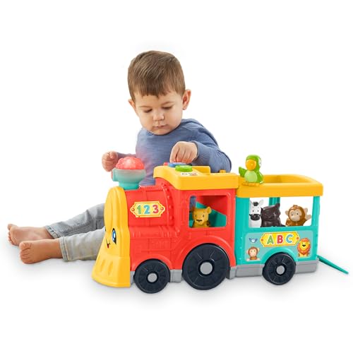 Fisher-Price Little People glidande leksaksbil för småbarn, med musik och 2 figurer för barn från 1 år, flerspråkig version, HYR88