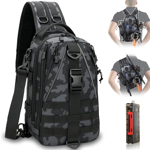 Aertiavty Compact Fishing Tackle Bag with Tackle Box and Rod Holder - Outdoor Sport Fishing Backpack (Black, Small)