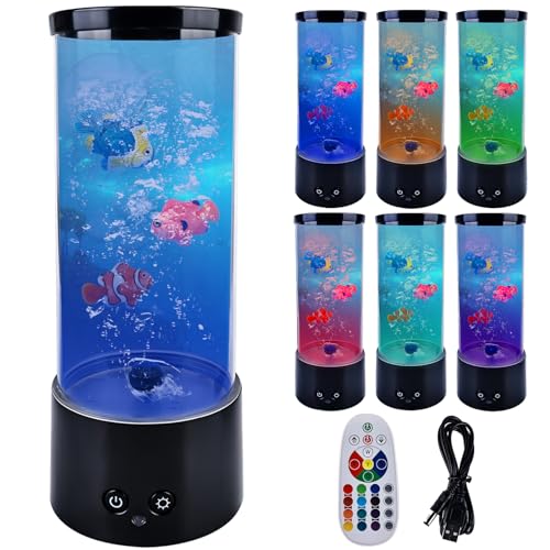 Vegena Lavalampa, akvarielampa, blå med fisk akvarium nattlampa, lavalampa LED med fjärrkontroll, 16 färger och 4 lägen, RGB-ljus för barn och vuxna, dekoration för hem, kontor (A)