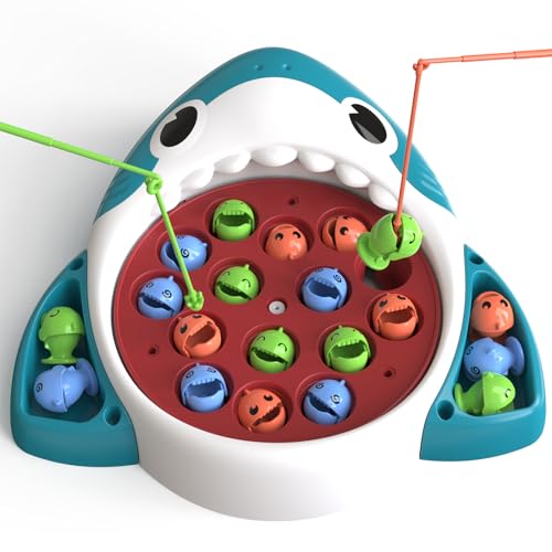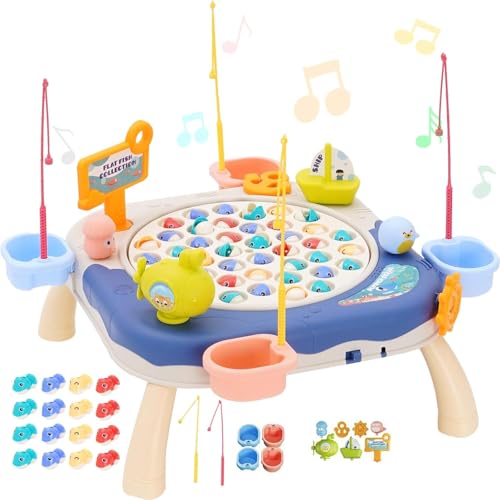 Doloowee Magnetiskt fiskespel för barn, 3, 4, 5 år, gamla pojkar, flickor, pedagogiska leksaker, småbarnsleksaker, musikalisk fiskeleksak med 3 fiskspö och 20 fiskar, födelsedagspresent för barn 3-5