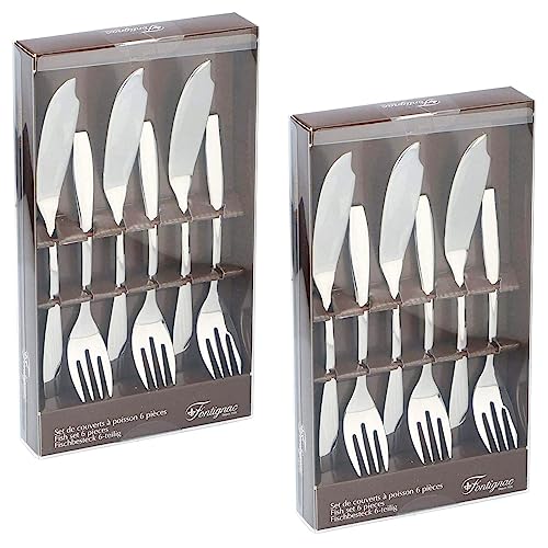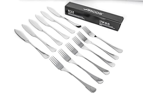 Arcos serie Madrid – 12-delat set med fiskbestick i presentförpackning (6 knivar 6 gafflar) – monoblock av rostfritt stål – silver