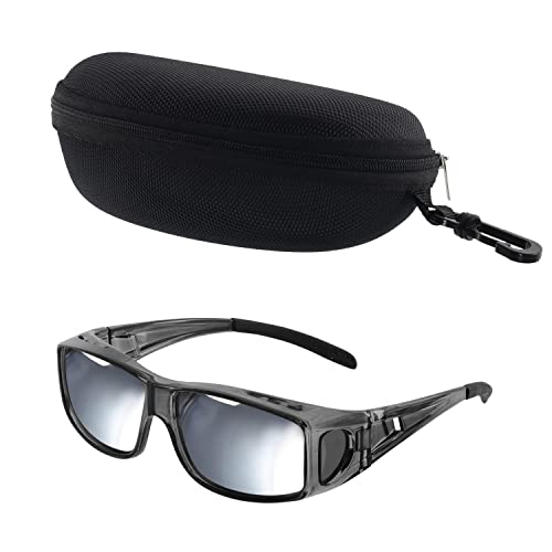 Bloomoak polariserade över glasögon, anti-bländning, UV 400-skydd för män och kvinnor – passar över glasögon/kostym för körning/fiske/golf, A7-silver spegellins/oval ram/Cat3/M