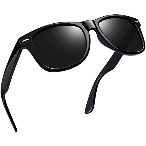 CGID Polariserade solglasögon, herr och dam, retro solglasögon herr, sport utomhus, golf, cykling, fiske, vandring, glasögon, solglasögon, M glänsande svart ram svart lins/polariserad, M