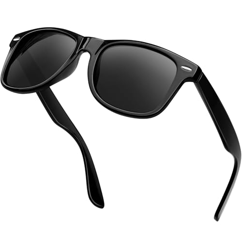 Joopin Svarta Solglasögon Herr Polariserade Retro Rektangulära Glasögon UV400 Dam Spegel Stor Polarized Sunglasses for Men and Women för Utomhus Vandring Fiske Golf Glansig Svart