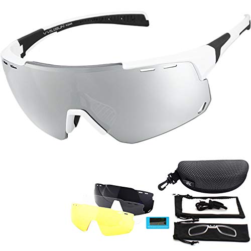 V VILISUN Cykling glasögon polariserade sportglasögon cykelglasögon UV400 skydd med 4 utbytbara linser cykelglasögon kvinnor män, för utomhussport cykling motorcykel löpning fiske golf
