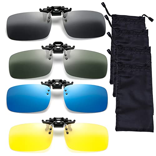 Bustlwor 4 stycken polariserande glasögon klämma, solglasögon klämma anti-bländare UV400, polariserad klämma på solglasögon med vattentätt glasögonfodral, för körning golf skytte fiske jakt