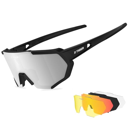X-TIGER Cykelglasögon för män, mountainbike-glasögon med 5 utbytbara glas, UV400-skydd, sportglasögon för cykling, löpning, fiske, golf och vandring