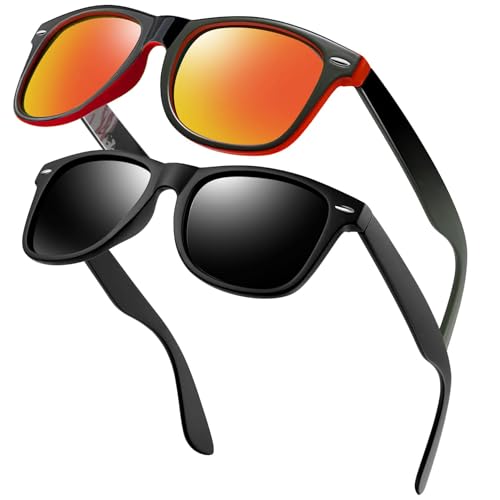 KANASTAL 2 Paket Orange Män Solglasögon för Kvinnor Polariserade UV400 Svart Herr Dam Sol Glasögon Men Sunglasses for Vandring Golf Körning Fiske