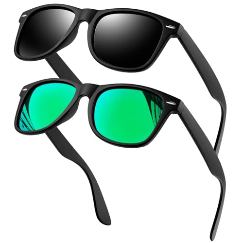 KANASTAL 2 Paket Grön Män Solglasögon för Kvinnor Polariserade UV400 Herr Dam Sol Glasögon Svart Men Sunglasses for Vandring Golf Körning Fiske