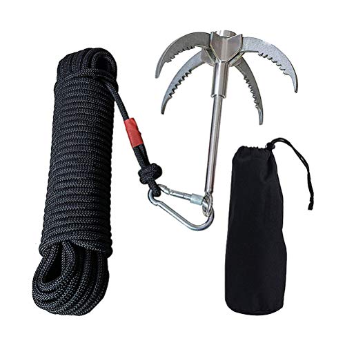 ABCDJHH Ant Mag Grappling Hook med 20 m (65 fot) 400 kg nylonrep fällbara krokar klätterverktyg rostfritt stål karbinhakar klo för camping bergsklättring klätterskatt överlevnad och fiske