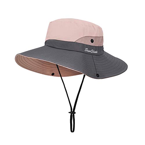 MengH-SHOP Solhatt dam, solhattar, brett brätte, UV-skyddad fiskehatt, nät, strand, solhatt, vikbar solhatt för trädgårdsarbete, resor, vandring, fiske, 56–58 cm (rosa)