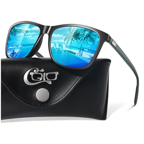 CGID Polariserade solglasögon, herr och dam, retro solglasögon herr, sport utomhus, golf, cykling, fiske, vandring, glasögon, solglasögon, H Svart ram blå speglad lins/polariserad, M