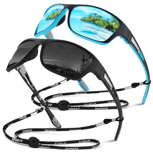 Sunier solglasögon män polariserade sport cykelglasögon solglasögon män speglade, okrossbara solglasögon fiske körning med 100 % UV400 skydd Cat 3 CE, Svart blå ram/isblå speglad lins + svart ram/grå