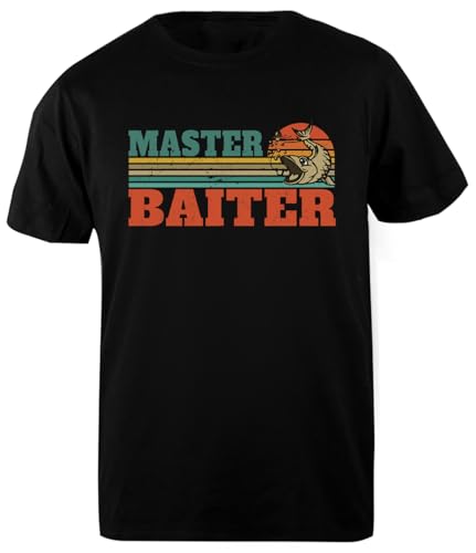 Master Baiter Retro Vintage Sunset Roligt Fiske Basic Bomullssvart T-Shirt För Män