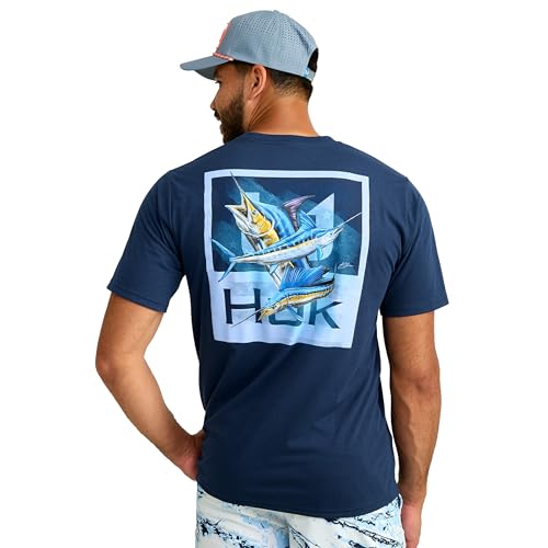 HUK Herr kortärmad prestanda T-shirt, fiske T-shirt, Kc Americana - Naval Academy, L
