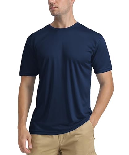 SHEKINI Rashguard herr UV-skydd skjorta herr snabbtorkande lätt ventilerande solskydd för utomhus surfing simning löpning fiske vattenskjortor solskydd T-shirt, Mörkblå, L