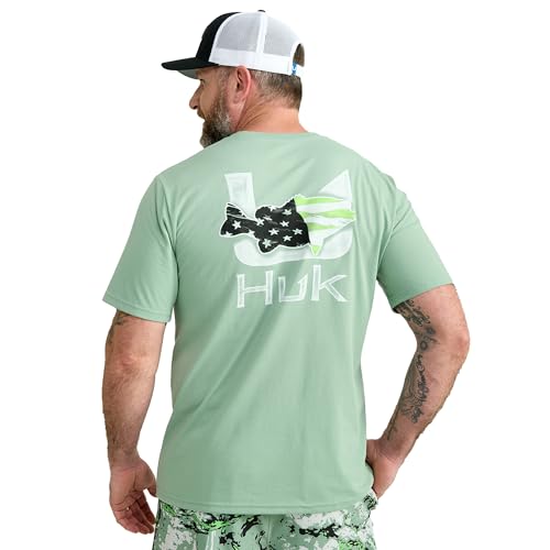 HUK Herr kortärmad prestanda T-shirt, fiske T-shirt, Fiskflagga – dimgrön, XL