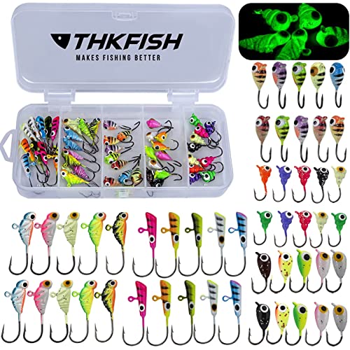 THKFISH 50 st/låda isfiske jiggar set is fiske beten väggöga jiggar huvuden för is fiske utrustning kit panfish crappie abborre jiggar is fiskelåda A