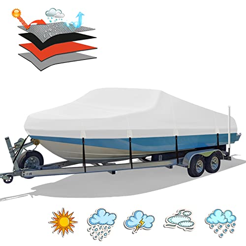 HAHASOLE Heavy Duty 800D PU vattentätt båtskydd, 23-24 tum släpvagn marin kvalitet polyesterduk, passar 7 – 7 m V-skrov, treskrov, fiskebåt, runabout, Pro-Style basbåt med åtdragningsrem