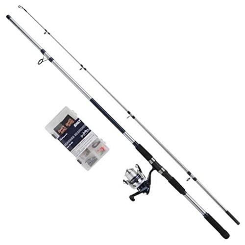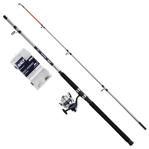 Shakespeare SALT båtbasare komboset, fiskespö och rulle kombination, spinnkombination inkluderar hårt fodral tackellåda, drag och sluttackel, hav - båtfiske, unisex, blå och vit, 2,40 m | 100-300 g