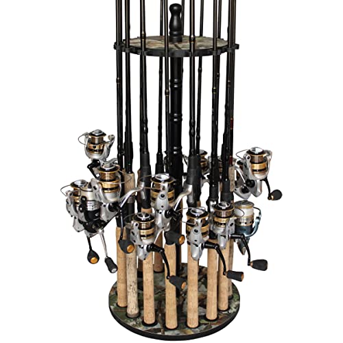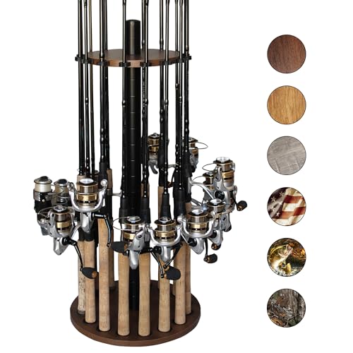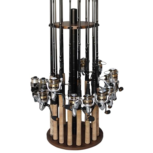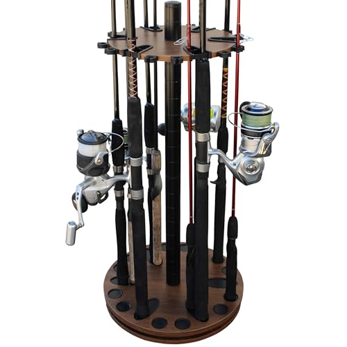 Rush Creek Creations | Rund fiskespöhållare för 16 sötvattenspön, fiskeutrustning och fisketillbehör | Fiskespöställ med 16 fiskespöklämmor för garageorganisation