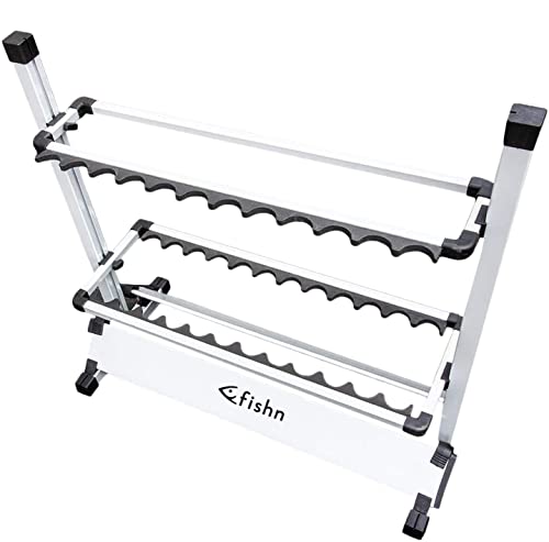Rush Creek Creations | Fiskespöhållare för 16 spön, fiskespö hållare för garage organisation och förvaring, för fiskerullar, fiskeutrustning, fisketillbehör, fiskelåda (360° åtkomst)