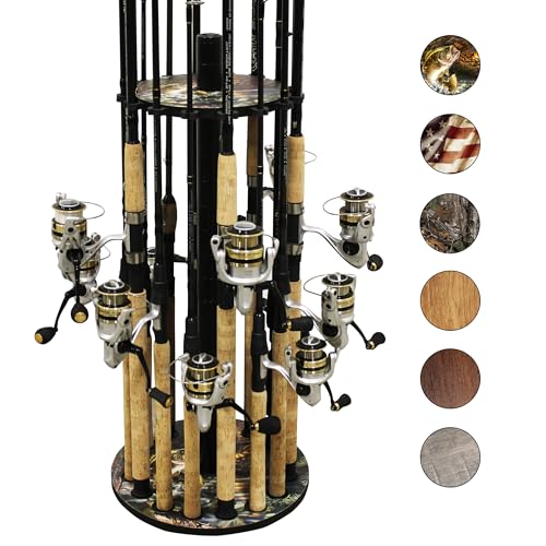 Rush Creek Creations 16-spö runt sötvattenspö förvaringsställ, fiskespöhållare med 16 sötvattenspöklämmor, hoppande bas