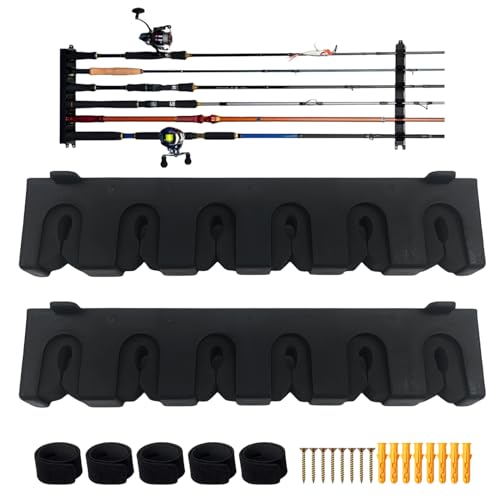 MEYAGOT 2 stycken fiskespöhållare för väggmontering, horisontell fiskespöhållare, fiskespöhållare för förvaring av upp till 6 spön eller kombos för de flesta stavar