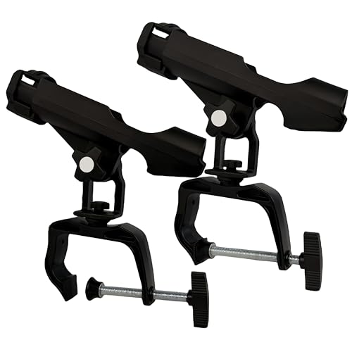 ZENFUN 2-pack fiskespöhållare, 360 graders rotation justerbar kraftlås, fiskespön, stor klämöppning, hopfällbar spöhållare för kanot, kajaker, enkel installation, bonusskruvar