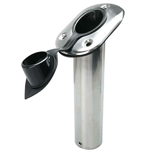 FreeTec Rostfritt stål 30 graders infälld båt fiskespöhållare med gummilock, rörfoder och gimbalstift