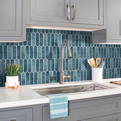 VEELIKE Lång fiskfjäll väggplattor självhäftande plattor för kök skala av och klistra fast kakel stänkskydd grön vinyl väggplattor klistermärken 6 ark självhäftande badrumsplattor vattentäta avtagbara
